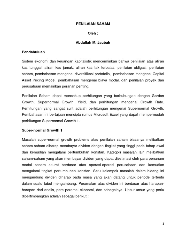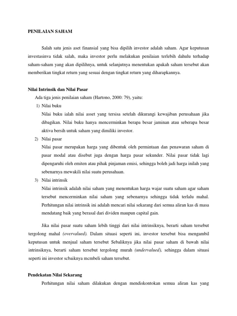 Nilai intrinsik (nilai teoritis) adalah nilai saham yang sebenarnya (seharusnya terjadi). Resume penilaian saham ciri khas dan jenis saham preferen saham preferen seringkali disebut dengan surat berharga hybrid karena memiliki banyak karakteristik, baik dari saham biasa maupun dari obligasi. A short summary of this paper.