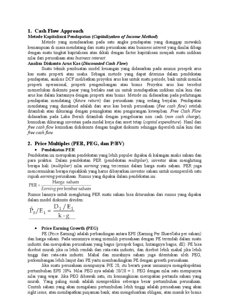 Dalam penilaian saham perusahaan, investor bisa menggunakan informasi rasio harga/aliran kas ini sebagai pelengkap informasi per, karena data aliran kas perusahaan bisa memberikan pemahaman yang lebih mendalam bagi investor tentang perubahan nilai saham yang akan terjadi. Dra maria yovita r.pandin, mm 1. Penilaian saham didefinisikan sebagai sebuah metode menilai harga wajar suatu saham.